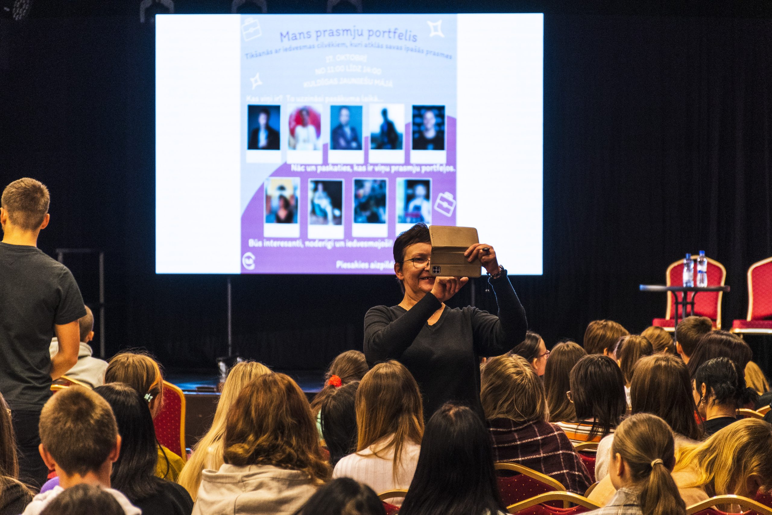 Pēc pasākuma jaunieši labprāt uzkavējās pasākuma zālē, uzdodot jautājumus un fotogrāfējoties  ar saviem iedvesmotājiem.