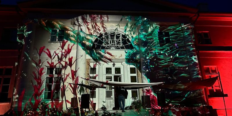 - 22:00 sāksies nakts gaismas performance – līdz ar saulrietu, muižas fasāde pārtaps par dzīvu audeklu – gaismas un animācijas ainavā, kas ceļojusi pa Eiropu un ASV, iegūstot 2. vietu video projekciju konkursā Kalifornijā. Projekciju “Mums nav jāglābj daba, MĒS ESAM daba” izstrādājusi māksliniece Anna Meldrāja– tā tiks speciāli pielāgota muižas arhitektūrai, savukārt muzikālo telpu radīs Ieva Matvejeva, veidojot dzīvu dialogu starp gaismu, skaņu un telpu.