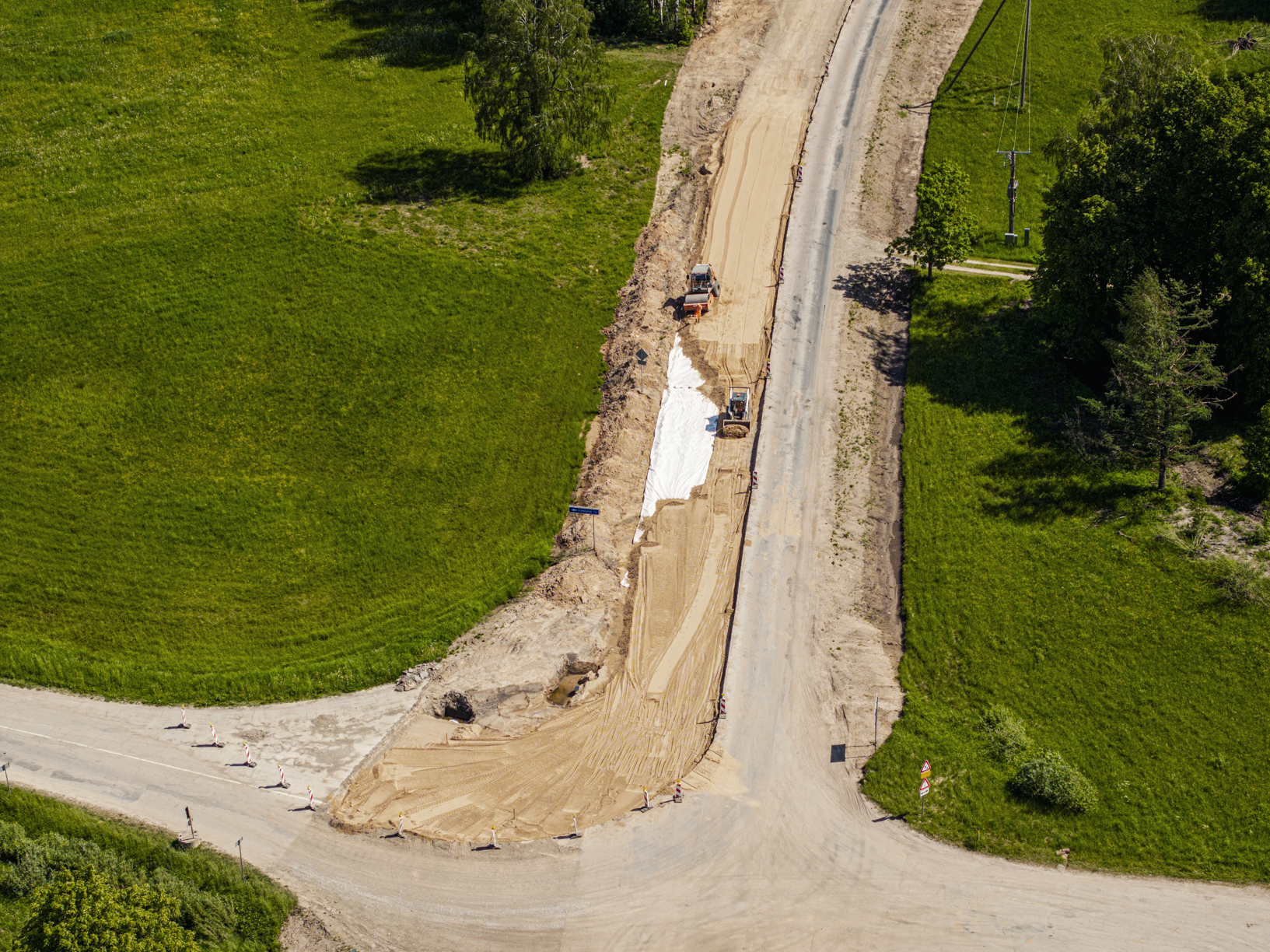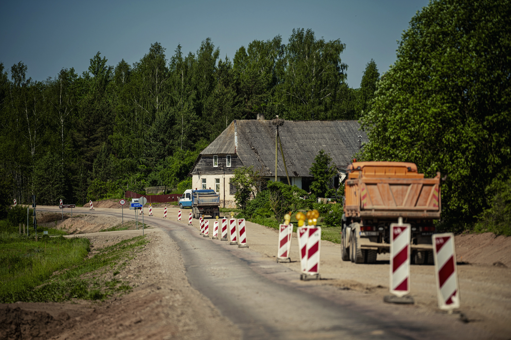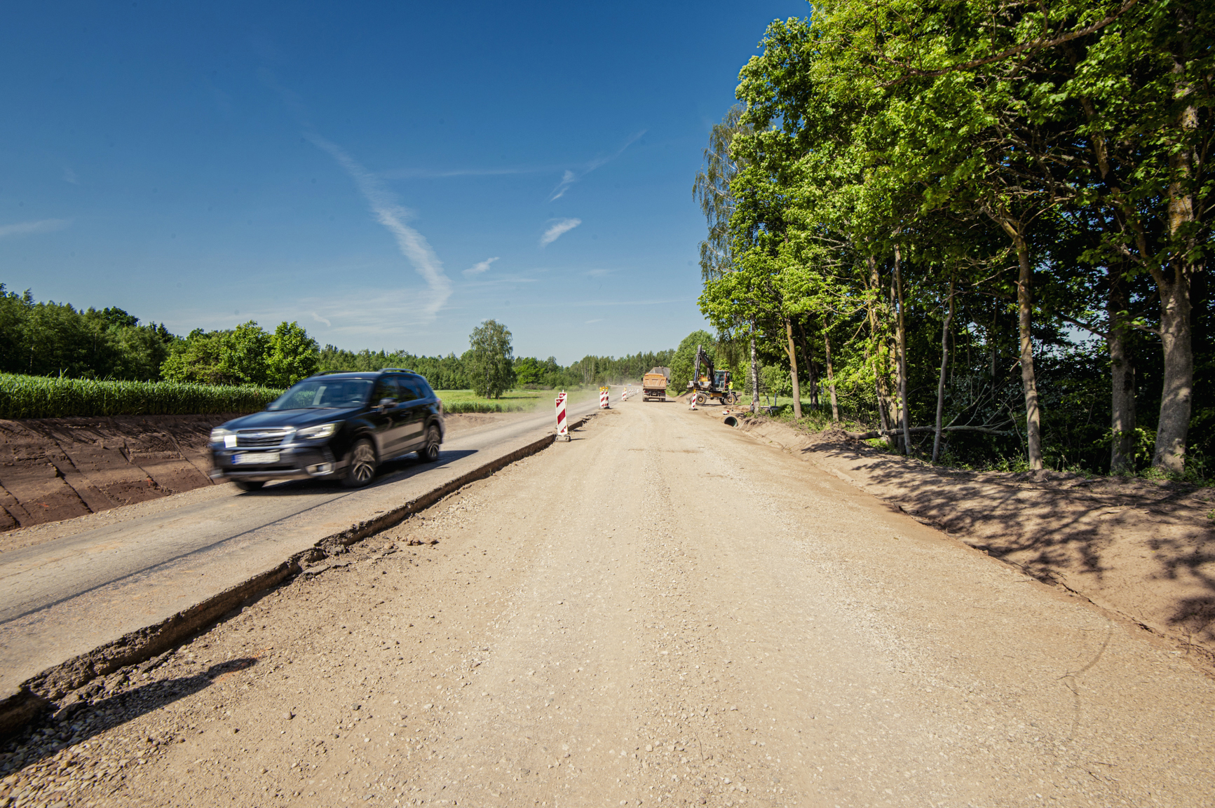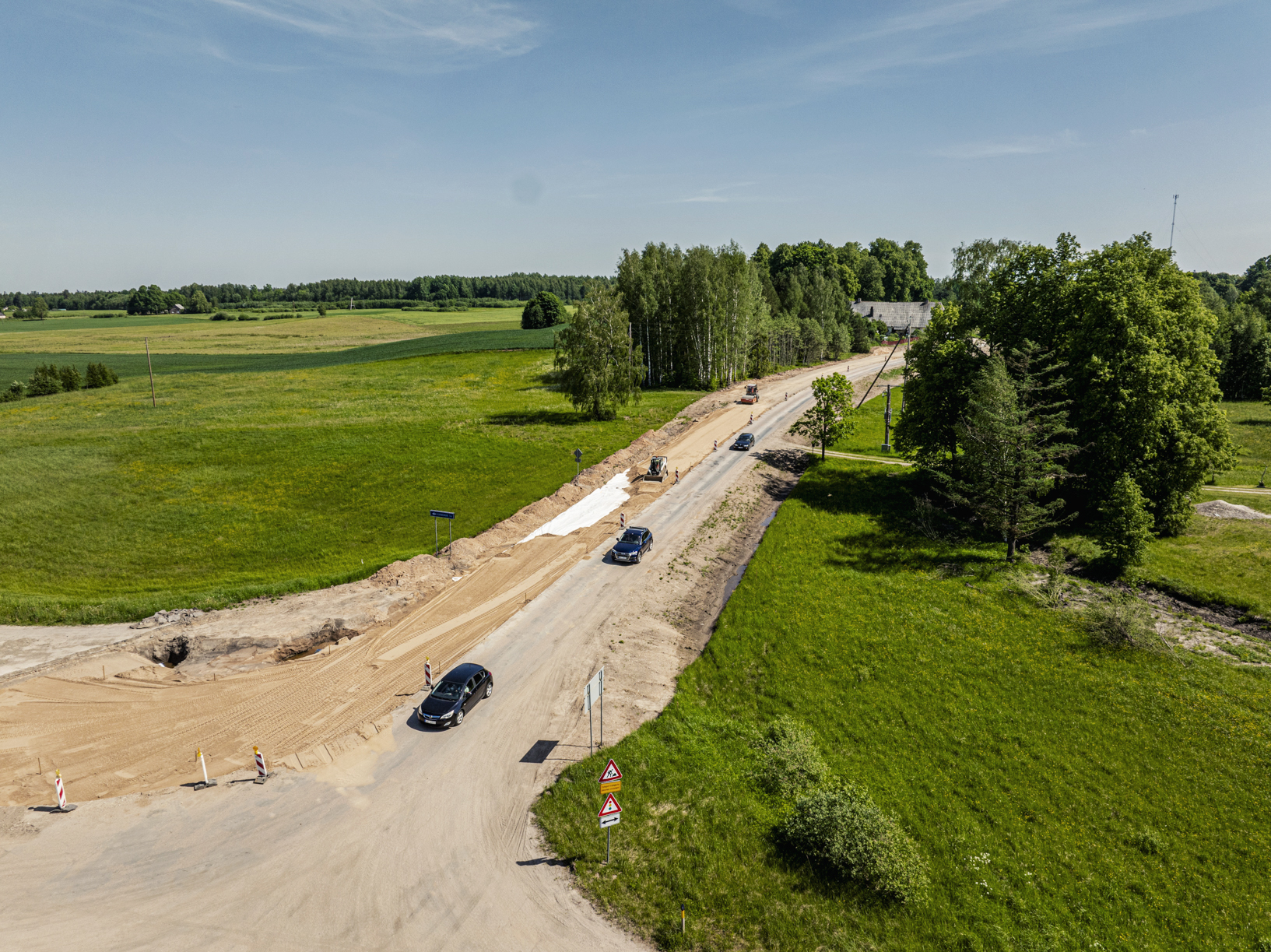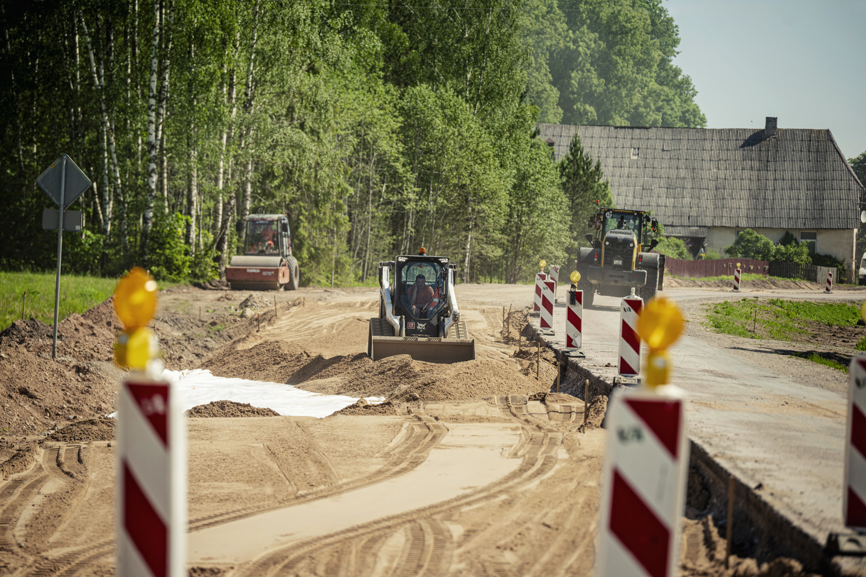 Fotoreportāža: pie Zemītes notiek ceļu būvdarbi; ar satiksmes ierobežojumiem jārēķinās līdz gada beigām