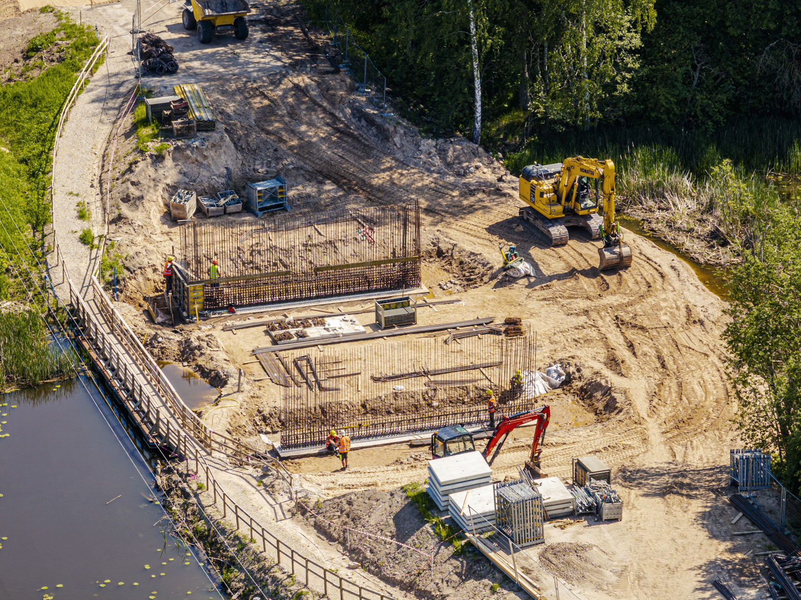 Jaunajam tiltam pār Vēdzeles upi jau ir izbūvēti urbpāļi, balstu režģogi un veic sagatavošanas darbus tilta laidumu betonēšanai. Savukārt autoceļa P121 posma vienā braukšanas joslā jau ir pabeigta salizturīgā slāņa un šķembu kārtas izbūve, ir nofrēzēts asfalts otrā joslā un arī tur sāks ceļa konstruktīvo kārtu pārbūvi.