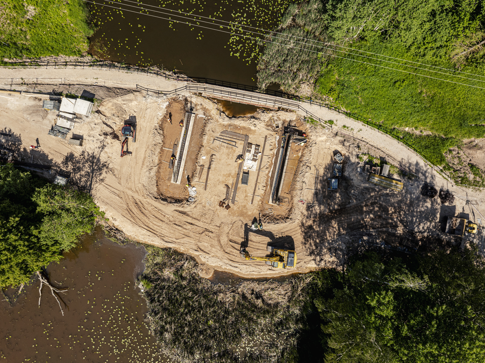 Tilts pār Vēdzeles upi ir nojaukts, un tā vietā būvē jaunu dzelzsbetona tiltu. Darbu vietu var apbraukt pa autoceļiem V1478 un P109, un tam nepieciešamas 20 minūtes. Savukārt autoceļa P109 būvdarbu posmā patlaban darbojas pieci pagaidu luksofori, un tā izbraukšanai jāplāno papildu 25 minūtes ceļā.