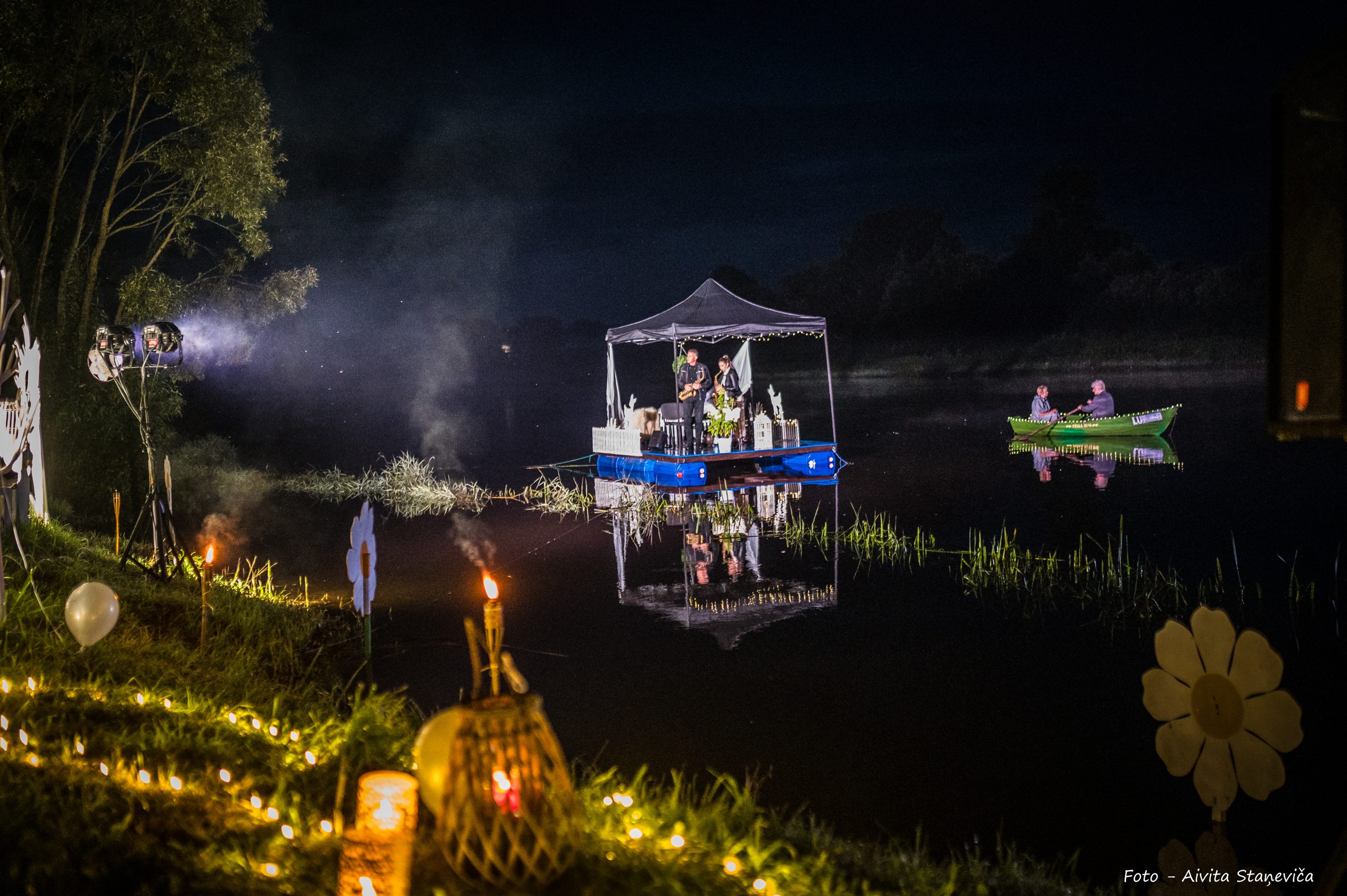 Ventas labajā krastā ar muzikālu sniegumu priecēja dziedātāja Aija Vītoliņa kopā ar pianistu Romānu Vendiņu, sniedzot lirisku un emocionāli piesātinātu priekšnesumu. Tikmēr kreisajā krastā klausītājus priecēja dziedātāju Ineses Ērmanes un Havjēra Fernandezsa duets, ko papildināja ģitārista Aleksandra Kuzmina stīgu skaņas. Savukārt pašā Ventā – uz plosta – Marta Apines un Grankanārijas mūziķa Neftali Robainas saksafonu skaņas.