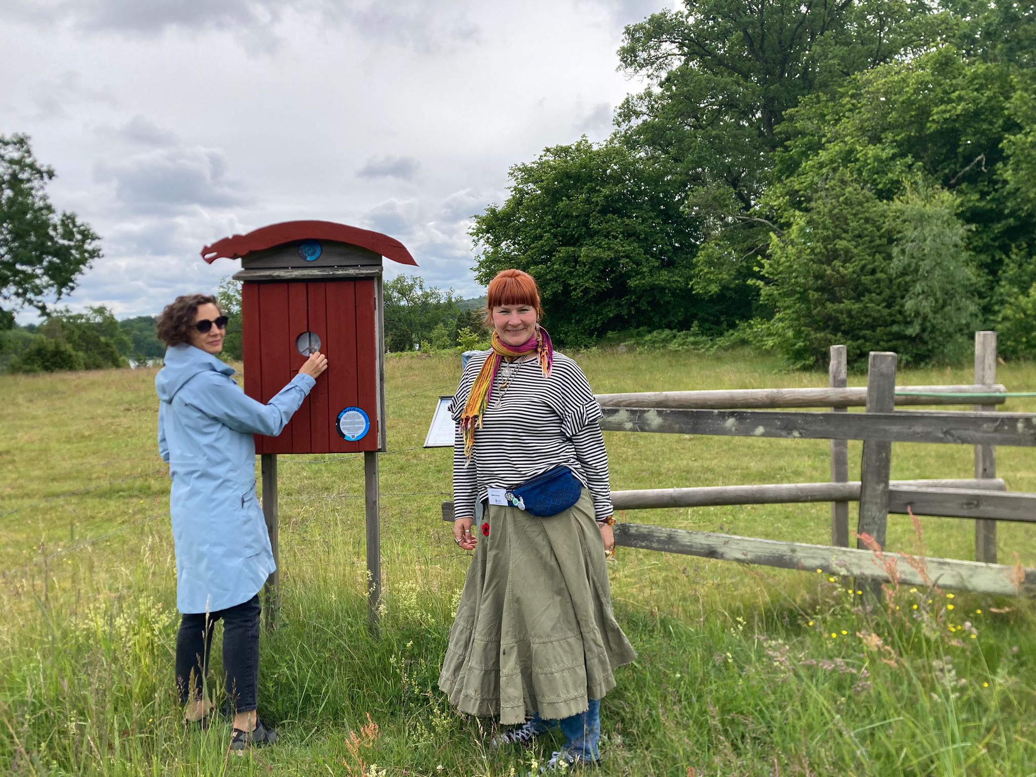 Paralēli festivāla notikumiem organizācijas vadītāja Tīne Vintere iepazīstināja ar Stāstniecības muzeju, kas bija festivāla epicentrā, kā arī ar Jungbī pilsētas nemateriālā kultūras mantojuma izpausmēm pilsētvidē – bērnu rotaļlaukumu, kas izveidots pēc mītiska pasaku tēla motīviem, un sienu gleznojumiem pilsētā, kas vēsta par stāstniecības tradīcijām. Devāmies izbraukumā ārpus pilsētas, apmeklējot stāstu maršrutu, kas izvietots trīs pašvaldību robežās un ar atraktīvām “pieturzīmēm” – īpašiem stāstu skapīšiem – vēsta par vietējām teikām un leģendām.