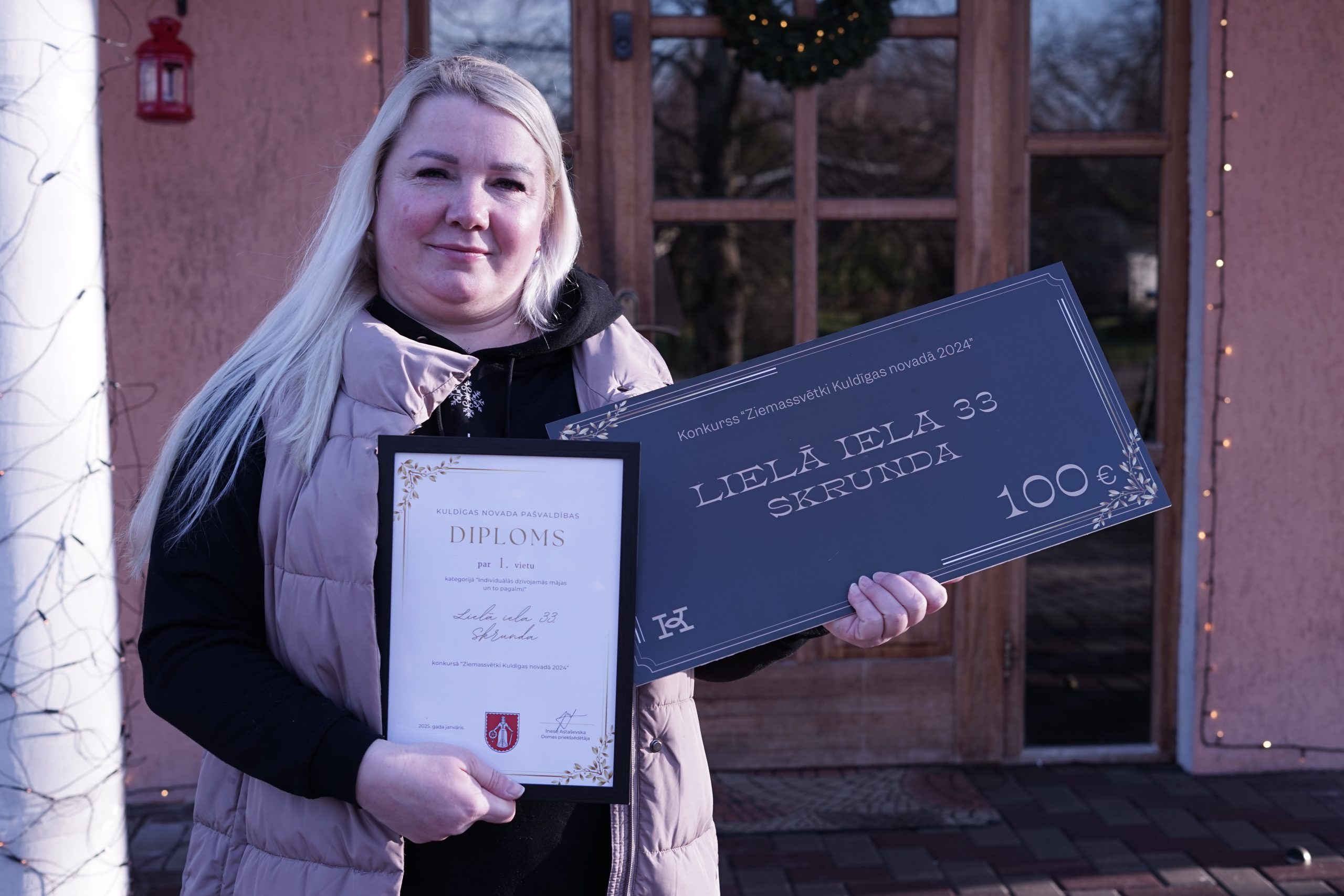 Šodien Kuldīgas novada domes priekšsēdētāja Inese Astaševska labāko noformējumu autorus godināja personīgi, sveicot ar Atzinības rakstu un naudas balvu un pateicās par radošumu un ieguldījumu novada rotāšanā.