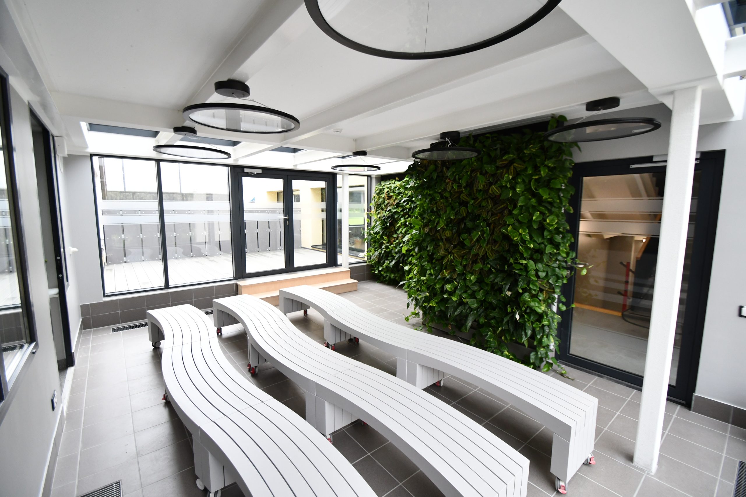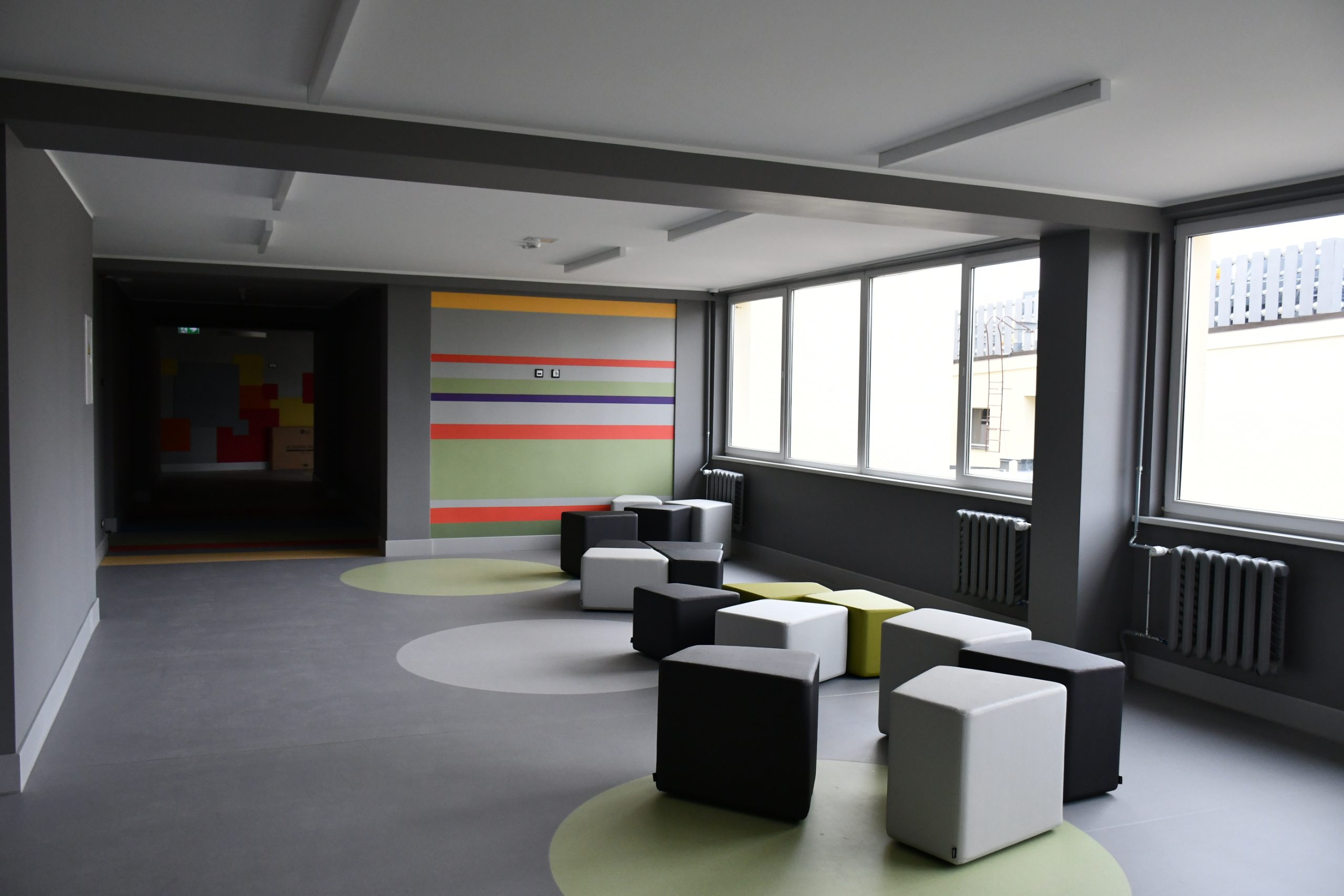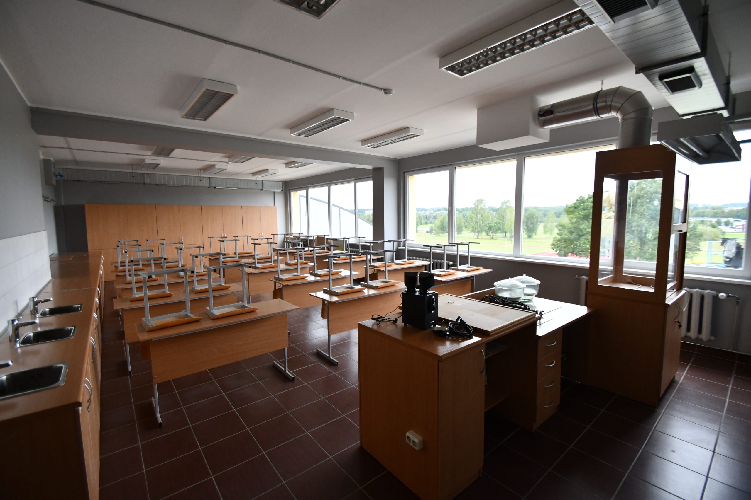 Kuldīgas Centra vidusskola lepojas ne tikai ar skaistu interjeru, bet arī jaunu aprīkojumu – 50 datoriem un 25 planšetēm, ekrāniem stundu sarakstiem un paziņojumiem, TV un interaktīvām tāfelēm, kā arī modernām un ergonomiskām mēbelēm – krēsliem, galdiem, mobiliem plauktiem, kas piemēroti mācību materiālu uzglabāšanai.