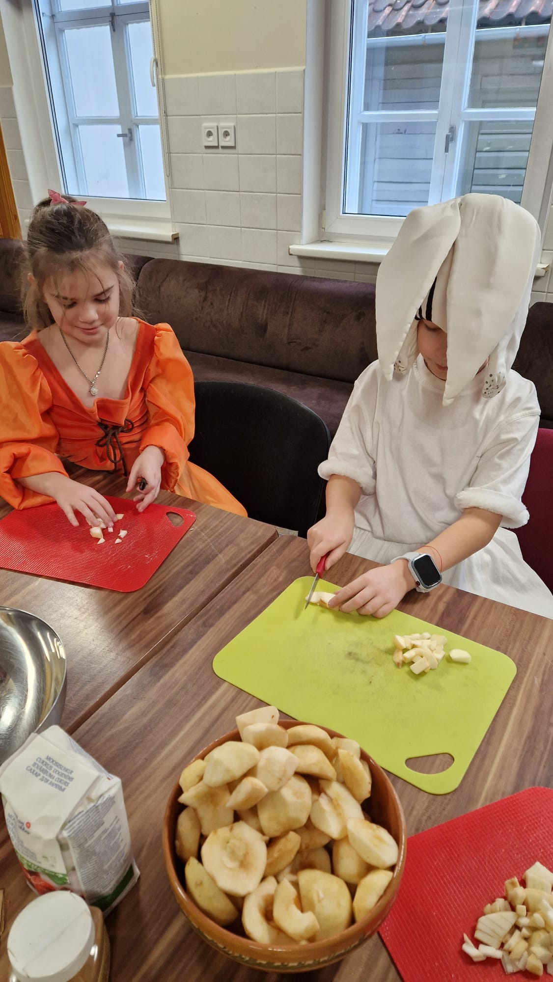 Kopīgi tika gatavots ābolu ievārījums un pankūku mīkla, kas pārtapa gardā pašu gatavotā maltītē.